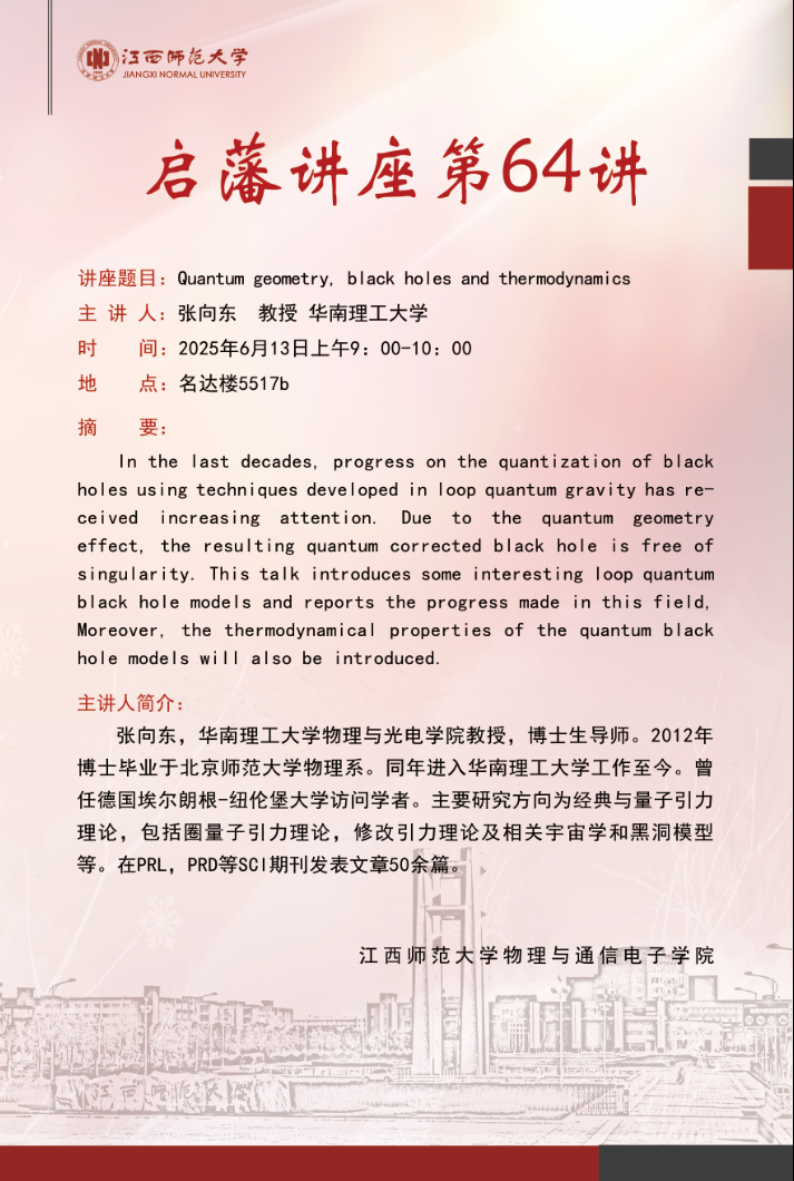 启藩讲座第64讲:Quantum geometry, black holes and thermodynamics