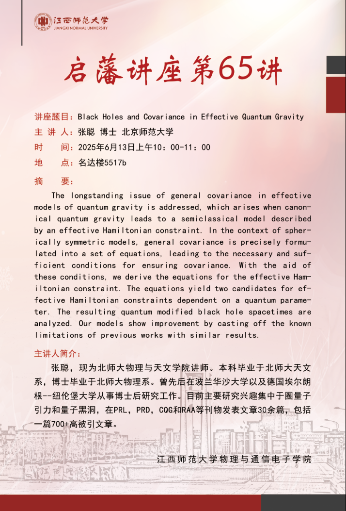 启藩讲座第65讲:Black holes and covariance in effective quantum gravity
