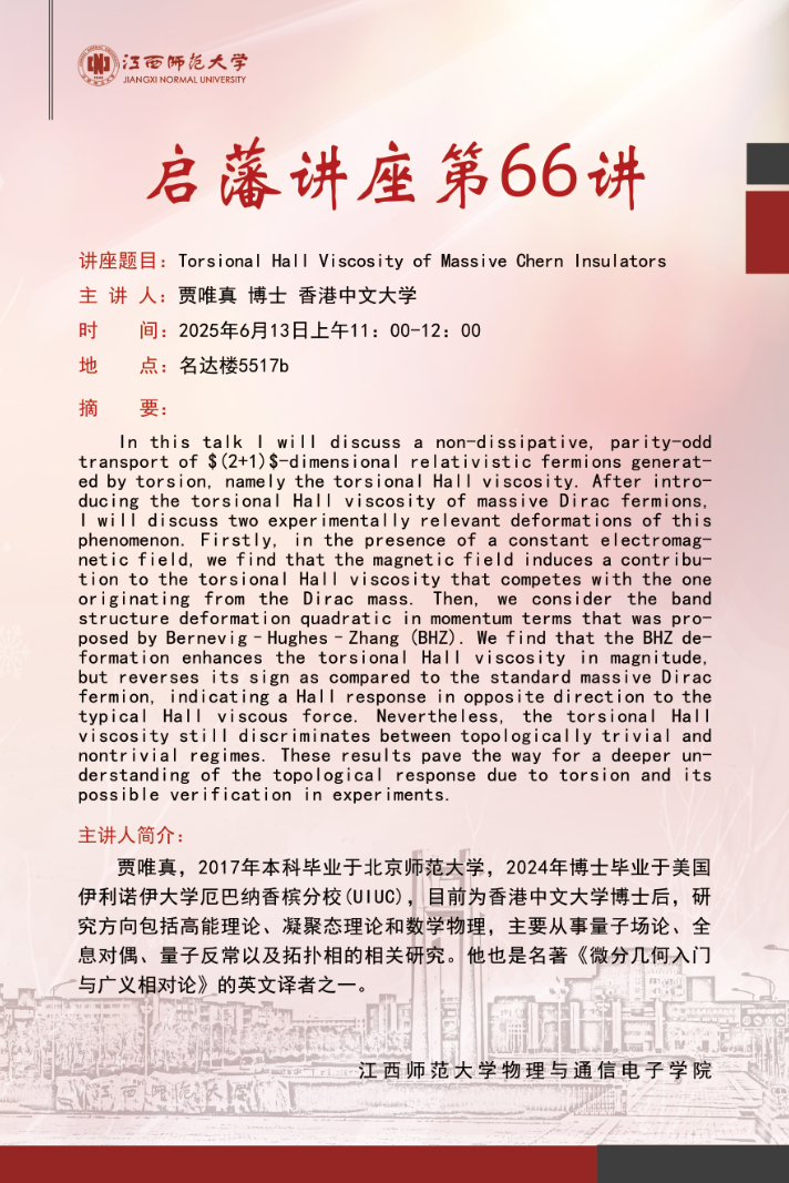 启藩讲座第66讲:Torsional hall viscosity of massive chern insulators
