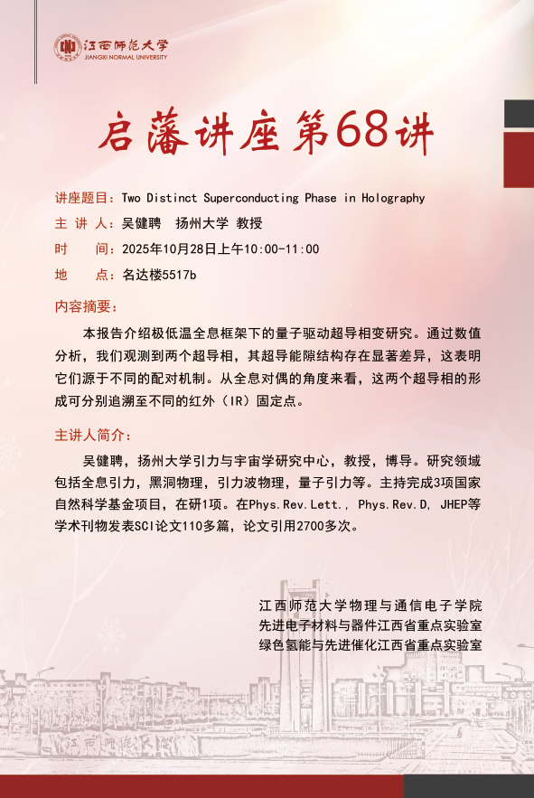 启藩讲座第68讲:Two Distinct Superconducting Phase in Holography