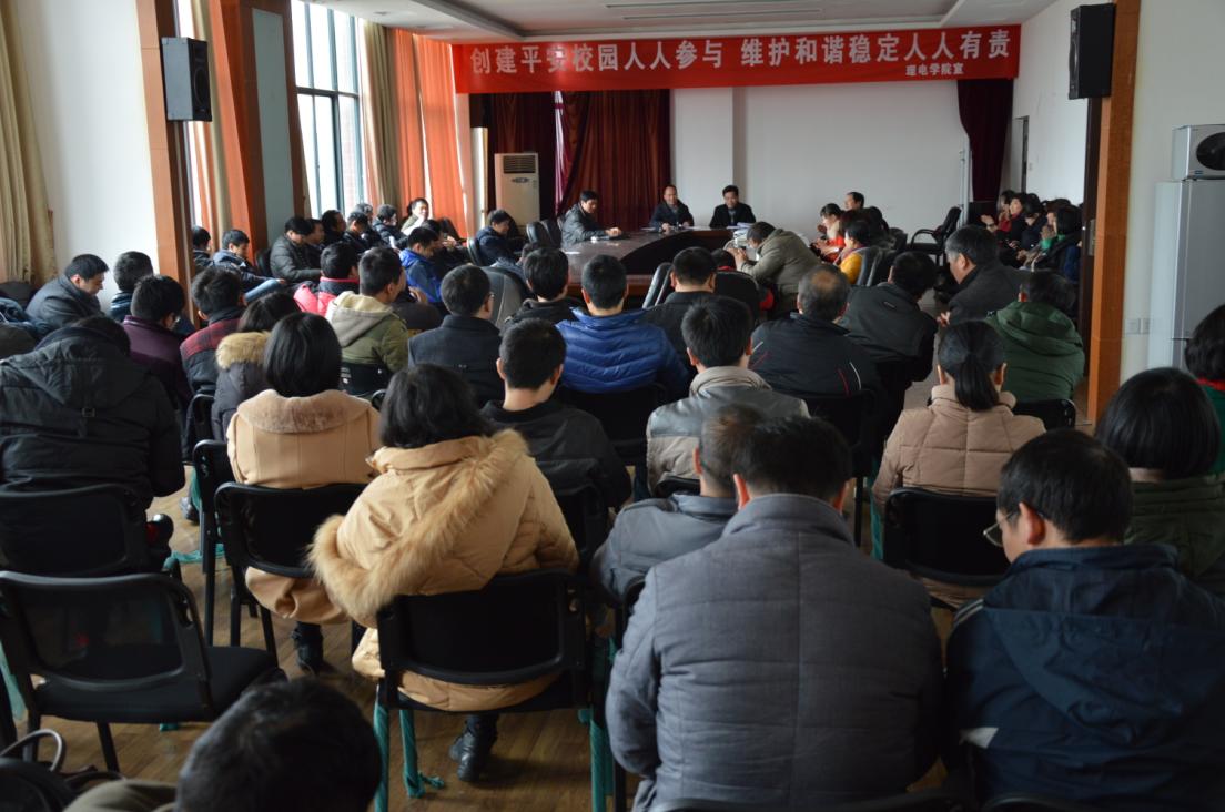 3月3日下午三点,理电学院在学院大会议室召开了综治宣传月活动学习动员大会,全院师生代表110余人参加了会议,会议由学院党委书记胡弢主持。