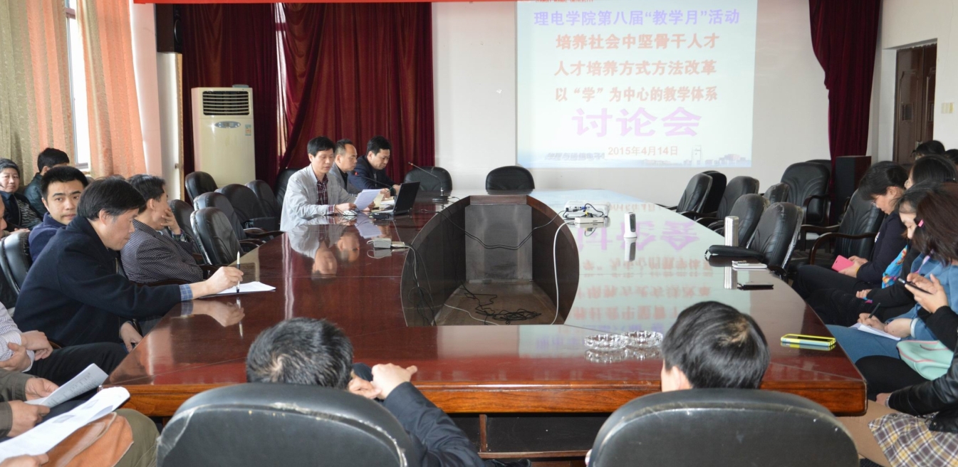 为进一步深化教育教学改革,提升人才培养质量,全面贯彻落实学校本科教学工作会议精神和本科教学工作要点,提升人才培养质量,更好的调动我院广大教师教书育人的积极性,进一步培养教师严谨治教、爱岗敬业精神,提高教学水平,理电学院积极响应学校举行的第八届“教学月”活动通知要求。2015年4月14日下午,在先骕楼1204会议室组织召开第八届“教学月”活动动员大会。