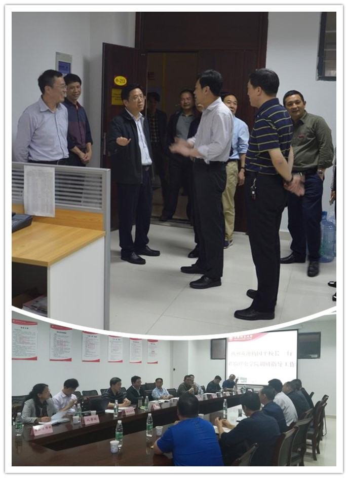 4月13日下午,校长梅国平与副校长丁晖、总会计师童颖华在相关部门负责人的陪同下,莅临物理与通信电子学院调研指导工作,深入了解学院的办学基本情况和发展设想,指导解决学院在博士点申报、学科建设、实验室建设及场地条件等方面亟待解决的问题。